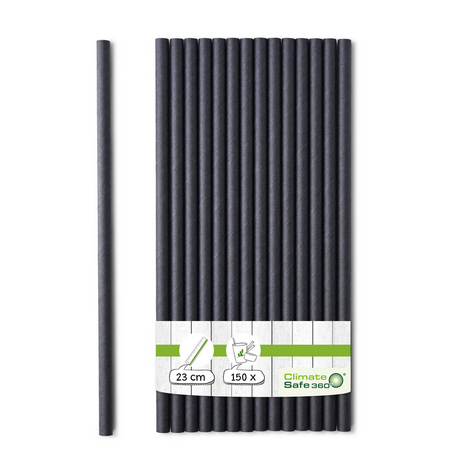 PURE Papier Trinkhalme lang 23 cm, Ø 0,8 cm, schwarz, 3.800 Stk.